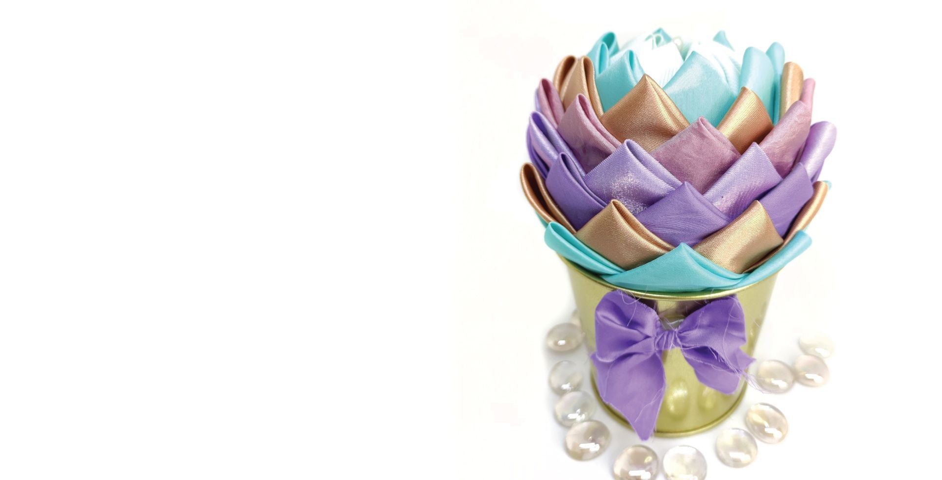 These classy folded fabric flowers would look great on your kitchen counter or your living room or even your dining table area. They would make a thoughtful and unique housewarming gift.