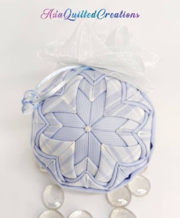 Beautiful handmade quilted keepsake ball ornament for a baby girl or boy which could easily decorate the nursery.