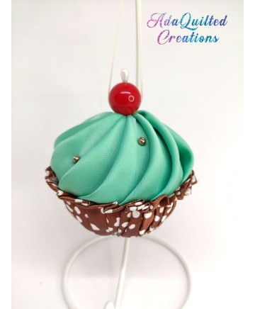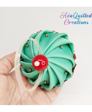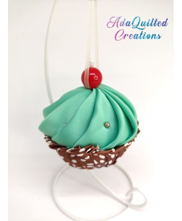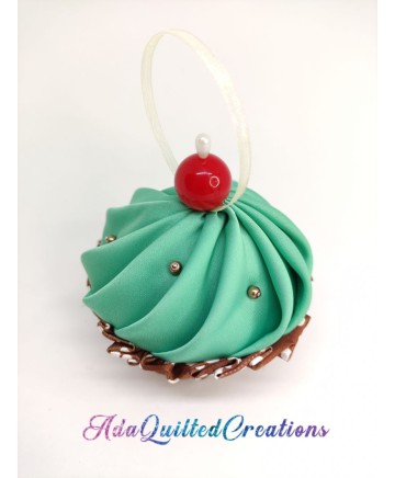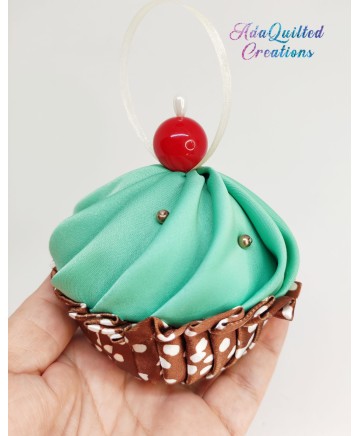 Imagine a bithday party or a baby shower party and tier trays filled with these cupcakes! Or you could have them hang from a little tabletop tree as decor in your party! They would work really well as party favors too! These beautiful handmade quilted cupcake ornaments could easily decorate any baby room too.