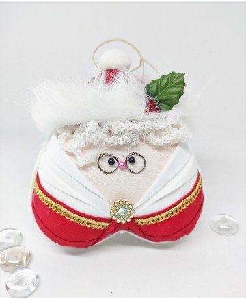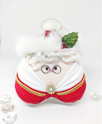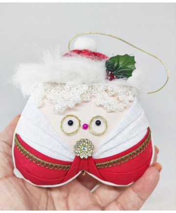 It's Mrs Claus!! Ain't this ornament so cute? Βeautiful handmade folded fabric ornament. It can look as cute on the tree as it would look on a special decorated corner of your home.