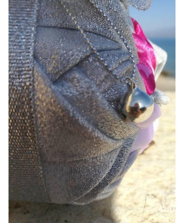 Beautiful iridescent pink fabric paired with silver lurex fabric and embellished with lots of matte metallic pink bead, silver bead spacers, sequins and silver metallic string.