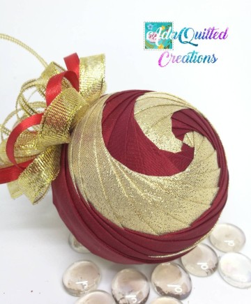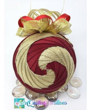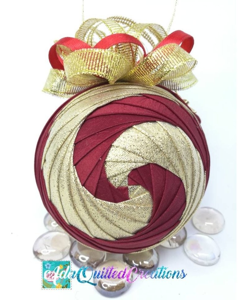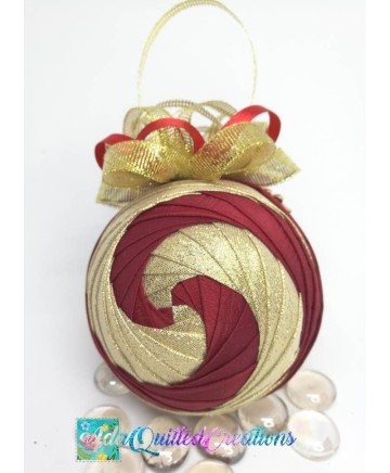 Beautiful handmade quilted Christmas ball ornaments. Classic and simple Christmas color combination but so beautiful in its simplicity! Great quality taffeta and cotton fabrics in Burgundy red, gold lurex and an ivory fabric featuring hollies.