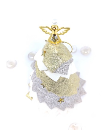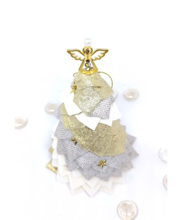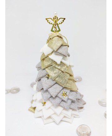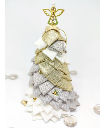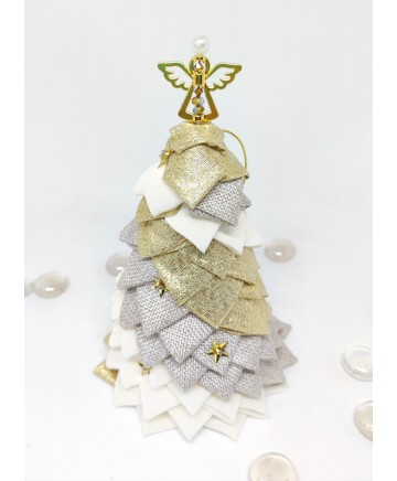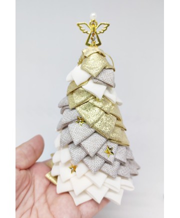 Beautiful handmade quilted tree ornament using gold lurex, creme organza and a burlap looking fabric that is soft to the touch.