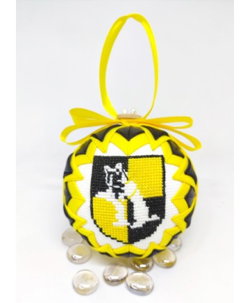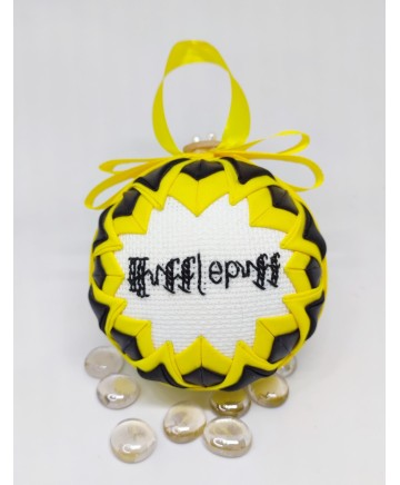 A beautiful cross stitched ornament featuring the Hufflepuff house that will make a perfect gift for the Harry Potter fans out there!