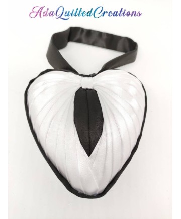 A folded fabric heart! Beautiful quilted heart ornament to accentuate your home decor. I crafted this heart with great attention to detail in a smoke free / pet free environment, using high quality satin and cotton fabrics. Handmade roses and gold pins are used to embellish this elegant heart ornament.
