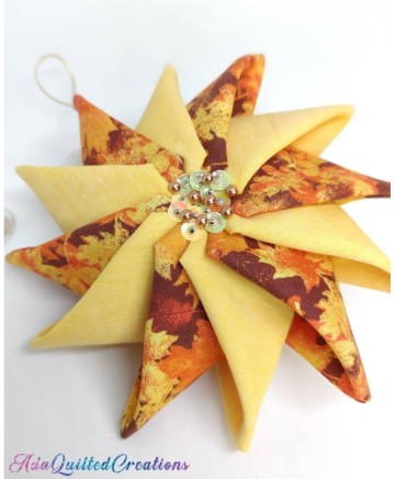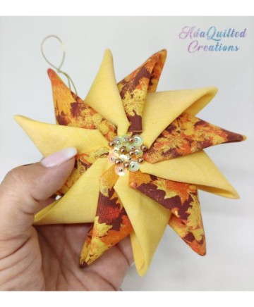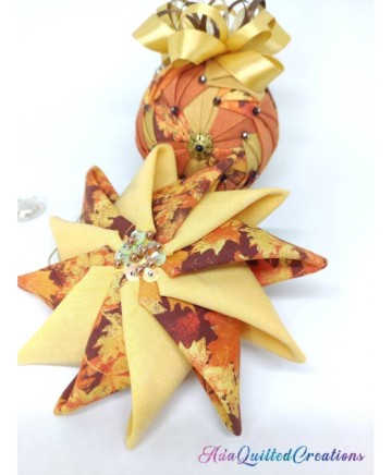 This folded fabric ornament would look great in your fall/thanksgiving decor or it could be a great christmas present, hostess gift, stocking stuffer, housewarming gift or a thoughtful teacher's gift.