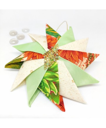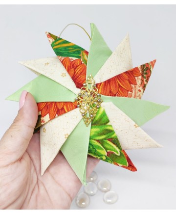 This folded fabric ornament would look great in your fall/thanksgiving decor or it could be a great christmas present, hostess gift, stocking stuffer, housewarming gift or a thoughtful teacher's gift.