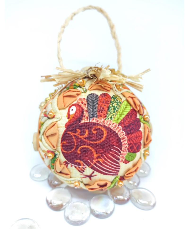 A new ornament in fall colors 🍂🍁 featuring a cute turkey.