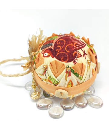 Beautiful handmade quilted pinecones in a beautiful orange organza / sheer fabric. Perfect for your fall decorations or holiday tree in gorgeous organza fabric!