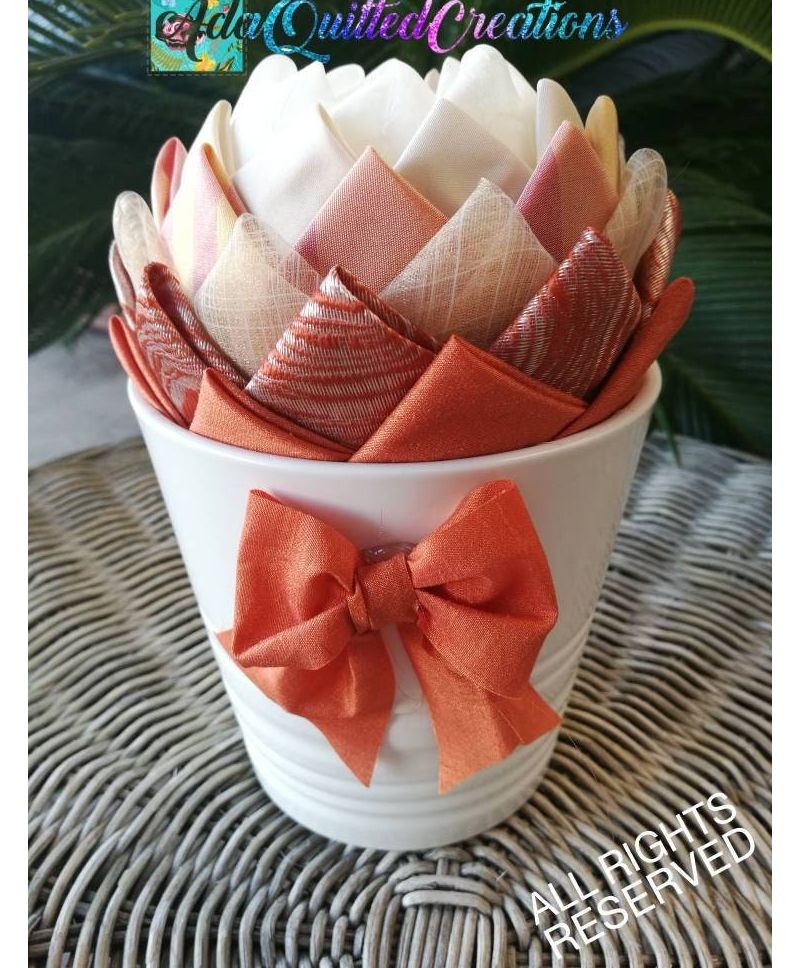 I crafted these pot flowers using my folded fabric technique with the utmost love, care and great attention to detail in a smoke free / pet free environment.
