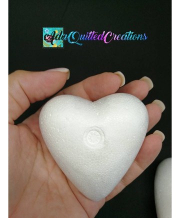 These styrofoam / polystyrene mini hearts look great as quilted ornaments and could make excellent nursery decor or teacher's gift!