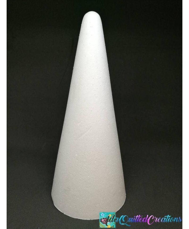These large styrofoam / polystyrene cones are quite higher than the ones used for mini quilted tree ornaments.