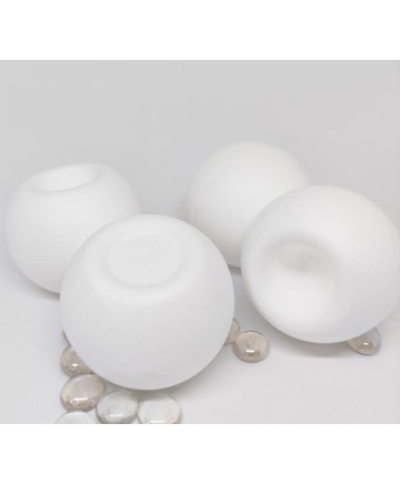 This set of 6 styrofoam / polystyrene candle holders have a flat base and an indentation on the top. Make beautiful candle holders using it in an upright position .
