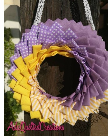 Folded fabric wreaths would also make an excellent wedding table centerpiece and could be quilted with fabrics in your wedding colour palette.