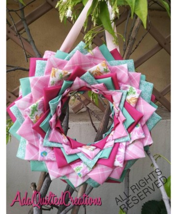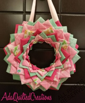 I crafted this wreath with great attention to detail in a smoke free / pet free environment, using high quality cotton fabric. Four different fabrics were used folded to quilt this unique decorative wreath on all sides.