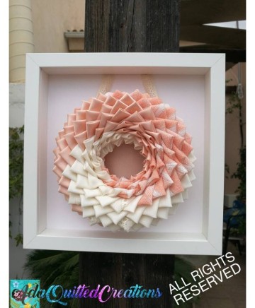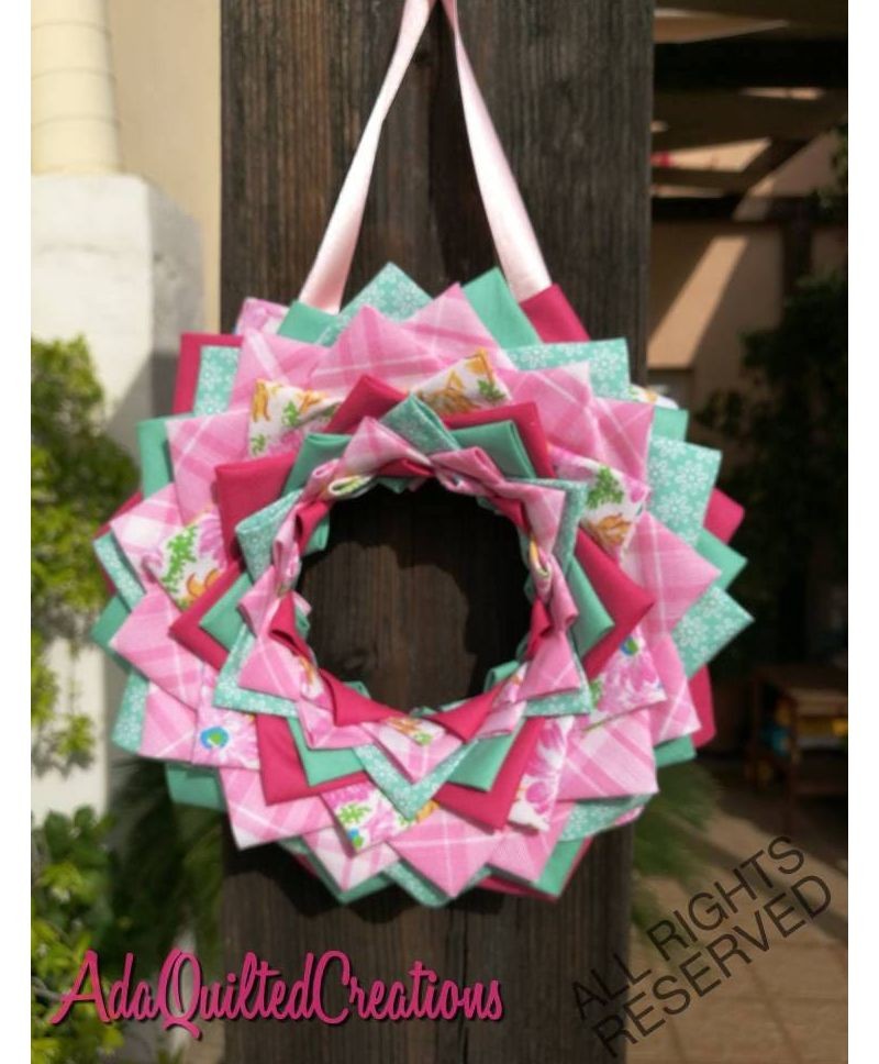 Folded fabric wreaths would also make an excellent wedding table centerpiece and could be quilted with fabrics in your wedding colour palette.