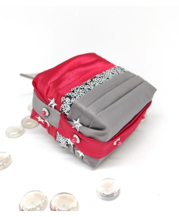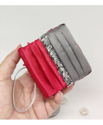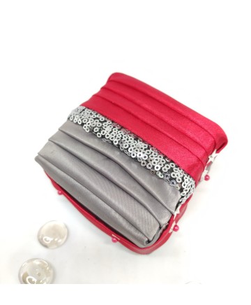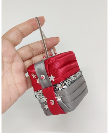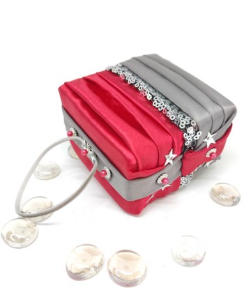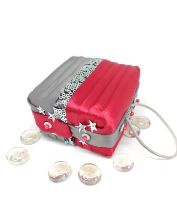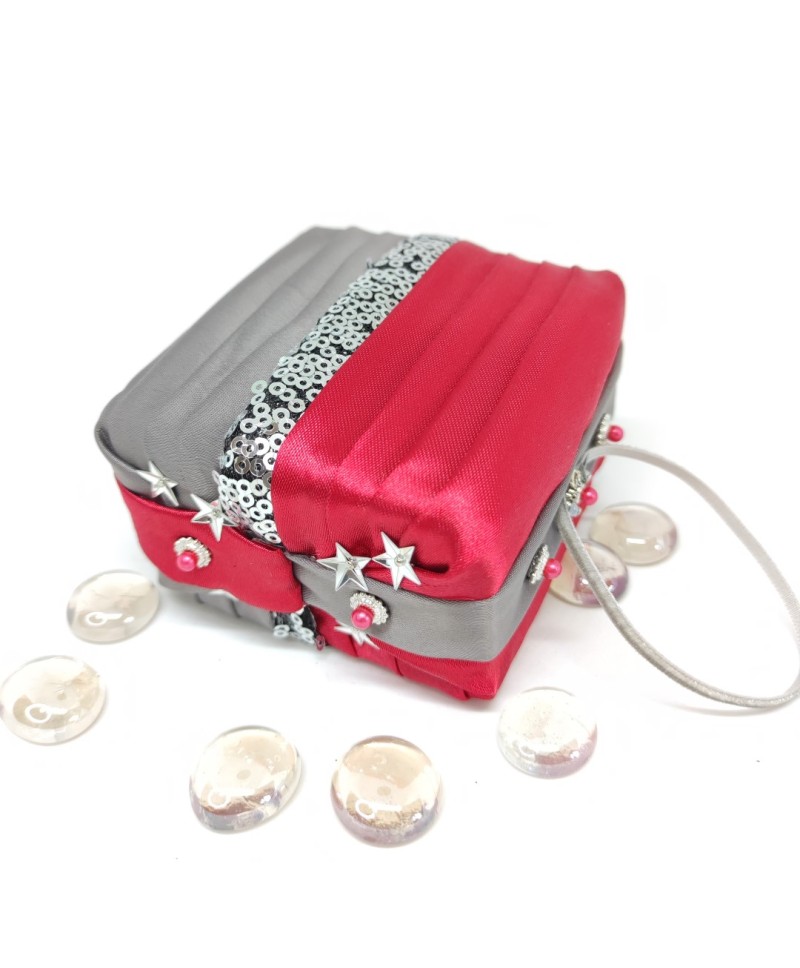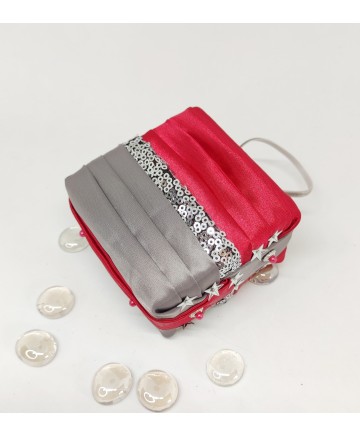 Made with gorgeous red and gray satin and a sequin embroidered organza in the middle! Please note that this box is for decoration purposes only. It does not open and it doesn't have a lid!