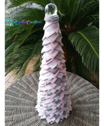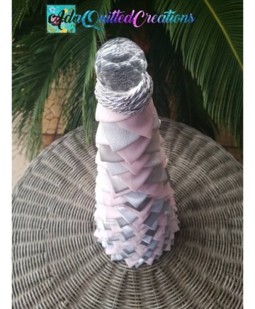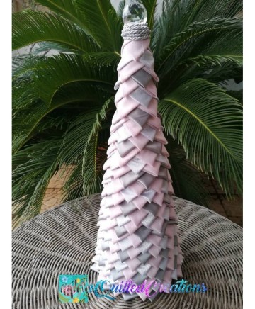 The quilted trees shown in the photos were crafted using a 40 cm and 30 cm styrofoam cones quilted with a grey satin, light silver and light pink cotton fabric. It comes in four different sizes (see the photo of all available Styrofoam cones available)