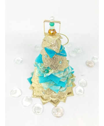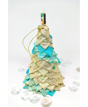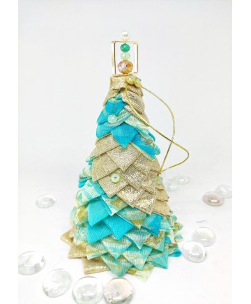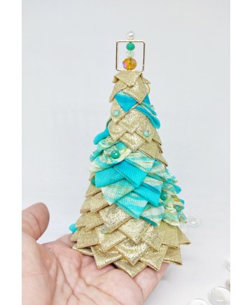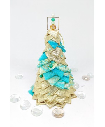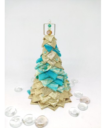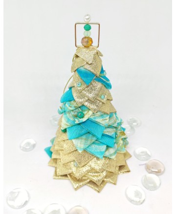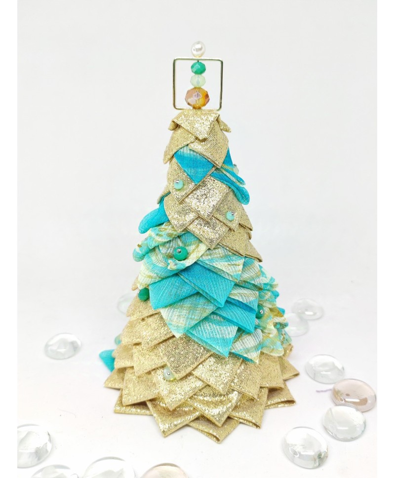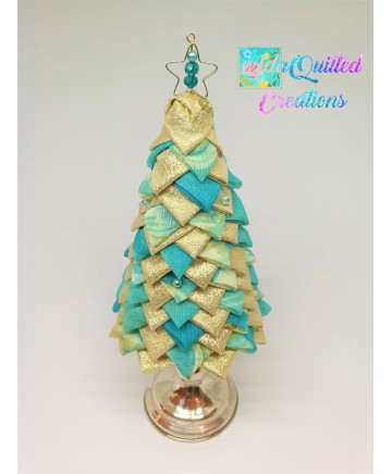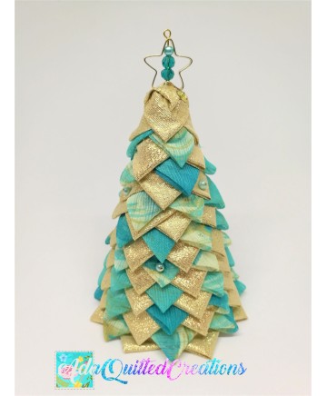 Beautiful handmade quilted mini tabletop trees in beautiful colors. Golden lurex fabric and aqua organza look so good together don't you agree?