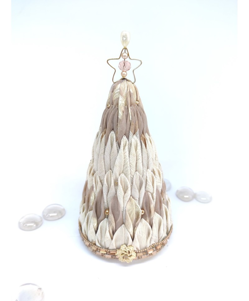 Beautiful handmade quilted mini tabletop tree in beautiful light beige and brown colors. I made this beautiful in beautiful light beige and brown colors. I made this beautiful tree using the "Twisted Tree pattern" from the talented Miranda Vango. You can find the tutorial at Miranda's shop: https://www.etsy.com/shop/MirandasOrnaments