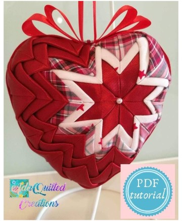 The flat shaped heart slice used to make this pattern is a custom made styrofoam heart shape made specifically for Ada Quilted Creations. Its size is 11 cm (4.33 inches).